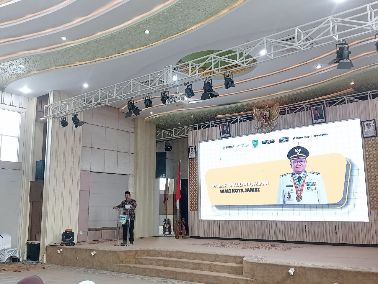 Jambi-Wali Kota Jambi, Dr. Maulana, secara resmi membuka dan meresmikan kegiatan Workshop Mak-Mak Matic (Melek Teknologi) yang digelar di Aula Griya Mayang, Kamis (16/10). Kegiatan ini diselenggarakan oleh Pemerintah Kota Jambi melalui Dinas Pariwisata dan Kebudayaan, bekerja sama dengan Kementerian Ekonomi Kreatif, serta platform digital Tokopedia dan TikTok.