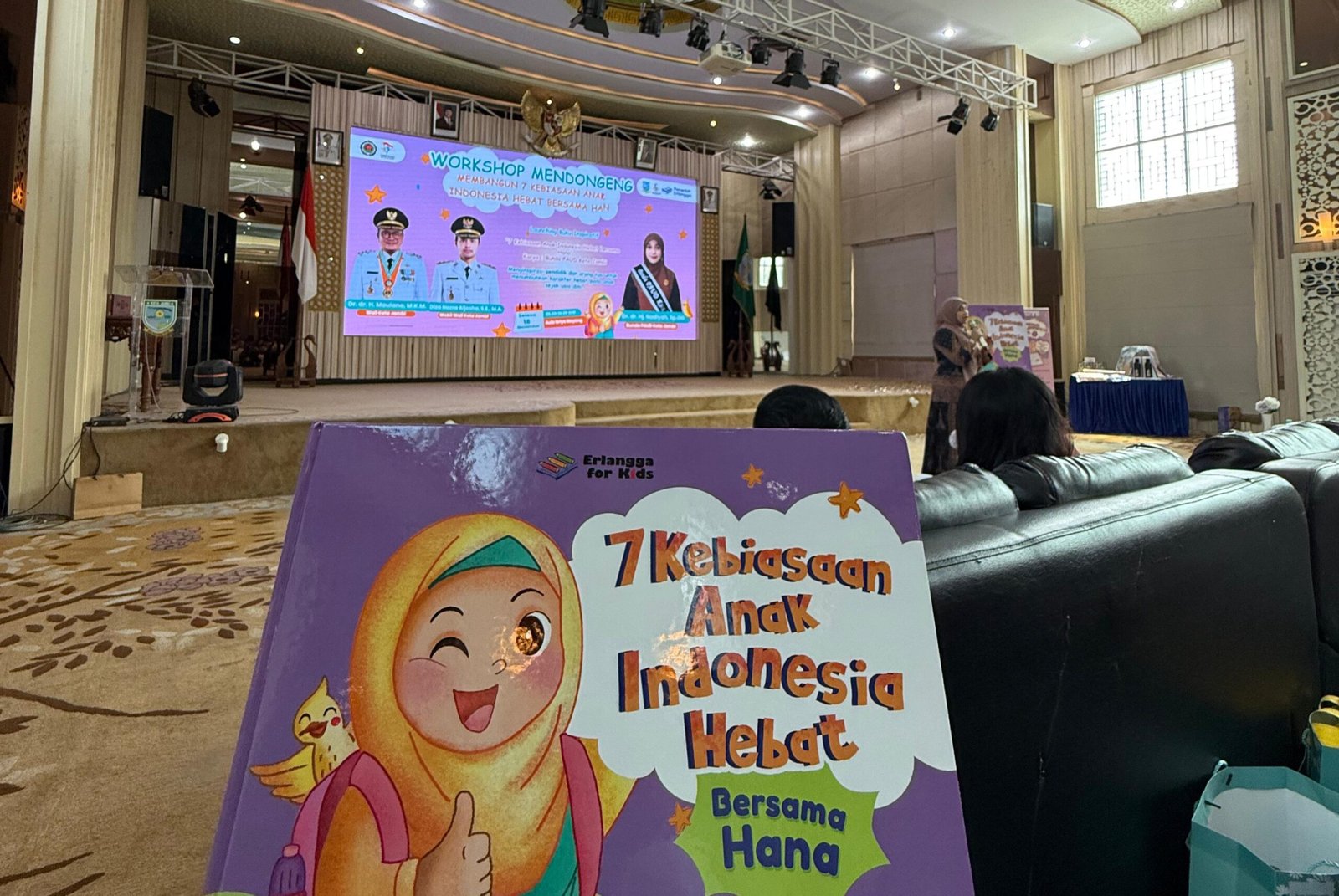 JAMBI – Ketua TP PKK Kota Jambi, Nadiyah Maulana, membuka Workshop Mendongeng sekaligus meluncurkan buku terbaru berjudul “7 Kebiasaan Anak Indonesia Hebat Bersama Hana”.