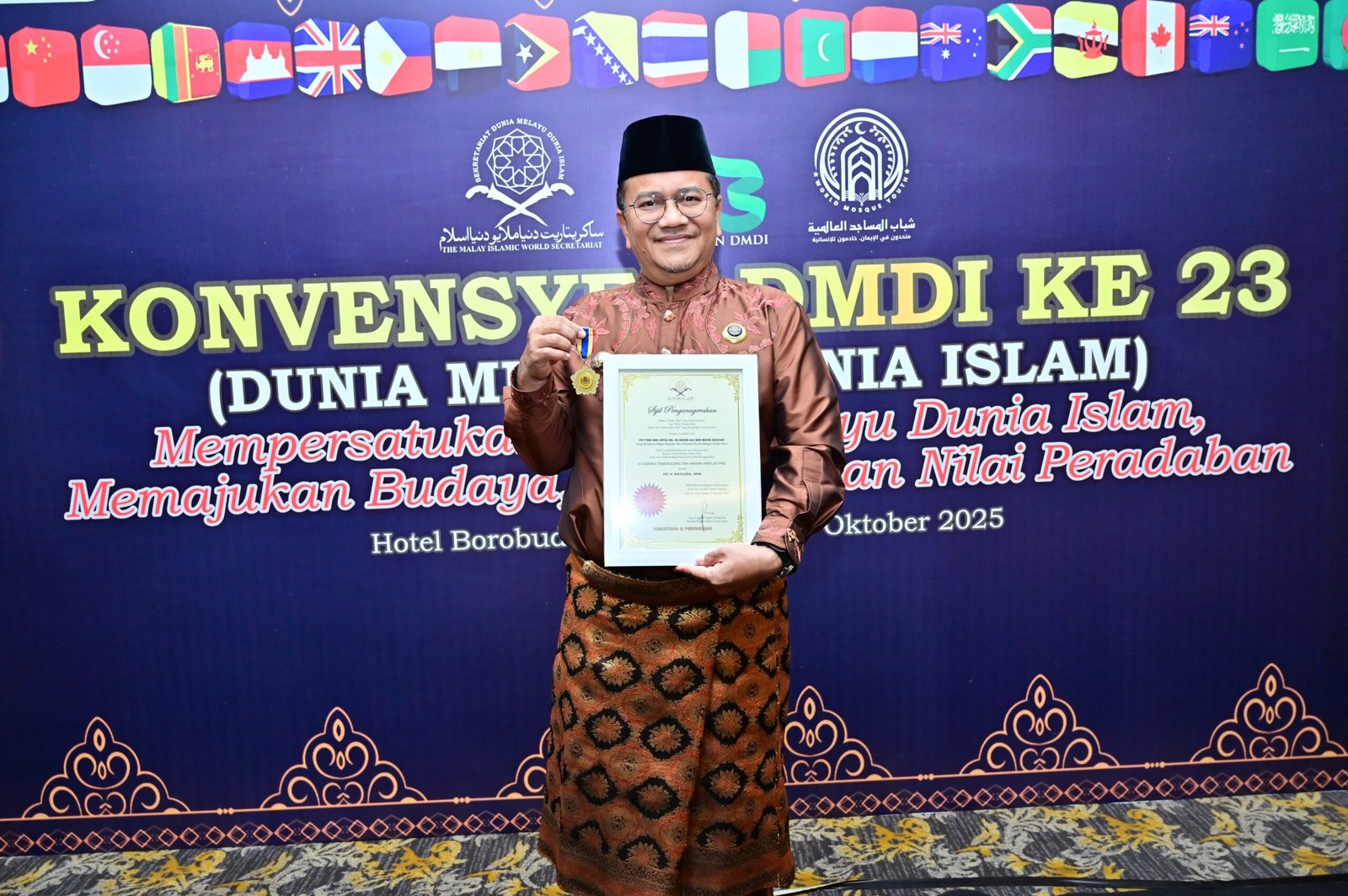 Penganugerahan tersebut diumumkan secara resmi melalui surat dari Sekretariat Dunia Melayu Dunia Islam (DMDI) bertarikh 15 Oktober 2025 (23 Rabiulakhir 1447H), yang ditandatangani oleh Prof. Emeritus Datuk Wira Dr. Mohd Jamil Bin Mukmin, Naib Pengerusi DMDI.