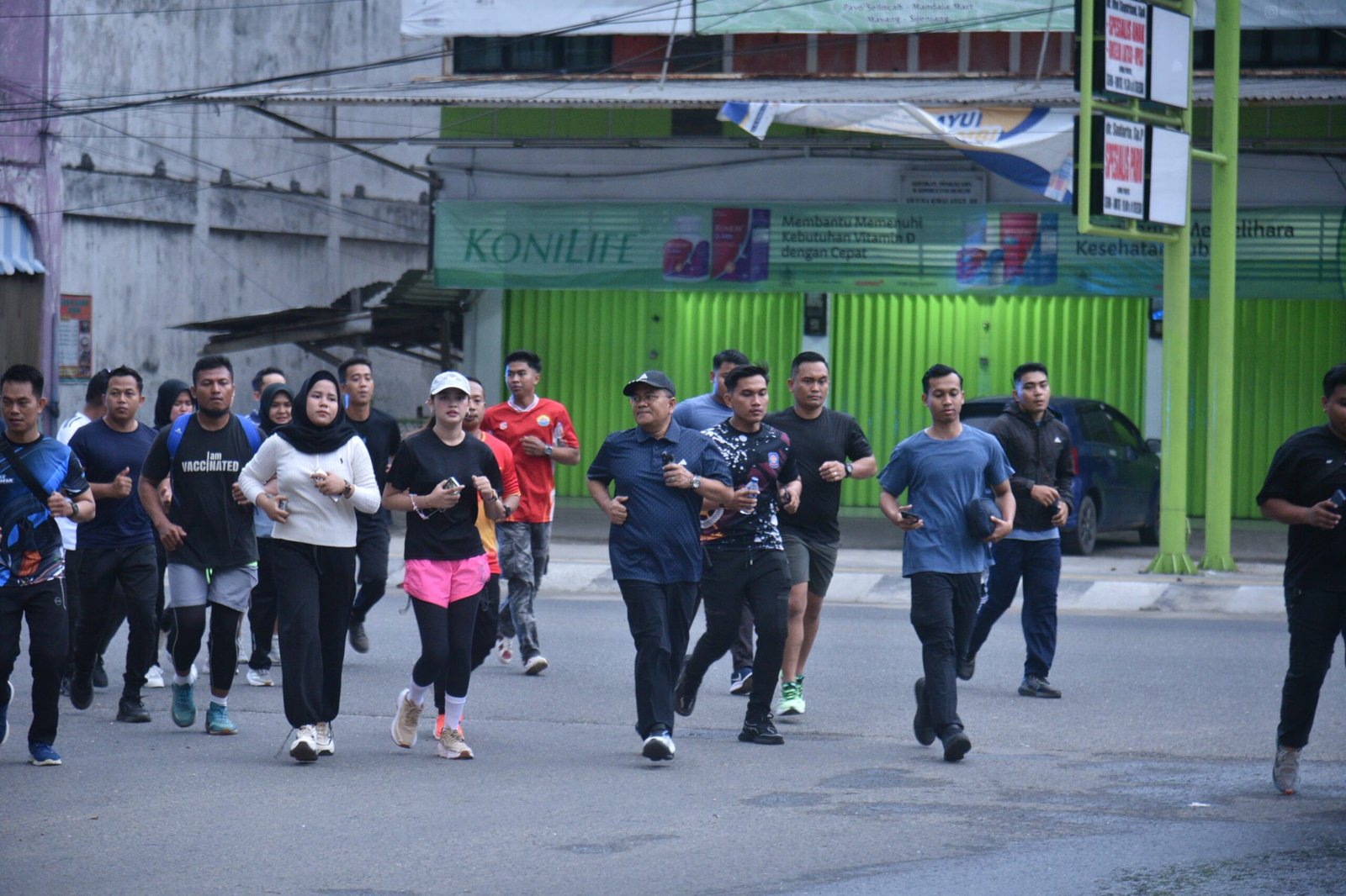 JAMBI – Wali Kota Jambi, Dr. dr. H. Maulana, M.K.M, bersama Wakil Wali Kota Diza Hazra Aljosha, S.E.,M.A, mendampingi sejumlah agenda Kunjungan Kerja (Kunker) Wakil Menteri Dalam Negeri (Wamendagri), Dr. H. Bima Arya Sugiarto, S.I.P., di Provinsi Jambi. Salah satunya melakukan olahraga maraton menyusuri jalan protokol di Kota Jambi, pada Rabu pagi (15/04/2026).